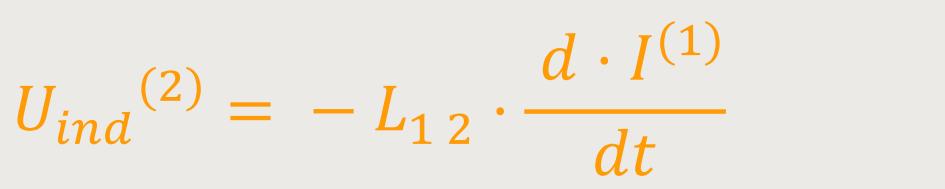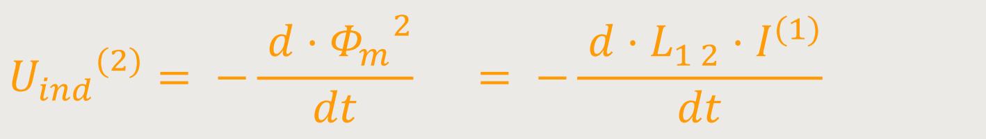 Gemäß dem Faraday'schen Induktionsgesetz lässt sich nun die induzierte Spannung in der zweiten Spule ermitteln: