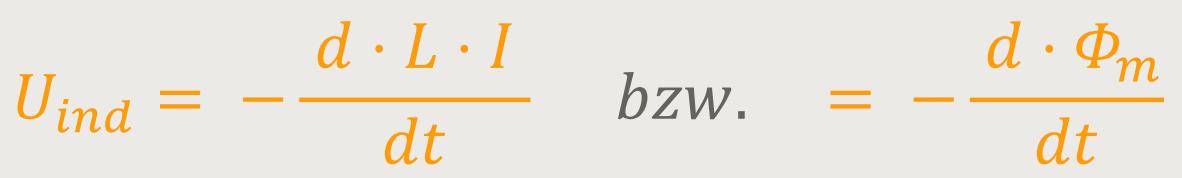 Der Proportionalitätsfaktor wird auch hier wieder mit L bezeichnet. Wobei damit jetzt die Selbstinduktivität bezeichnet wird. Diese Spule wirkt in der Weise auf sich selbst zurück, dass sich eine Induktionsspannung ergibt.
