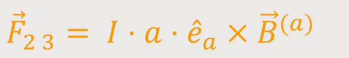 Nun möchte man wissen, welche Kraft auf eine solche Fläche in einem homogenen äußeren Magnetfeld ausgeübt wird. Hierzu rechnet man sich die Lorentzkraft für alle vier Teilabschnitte aus.