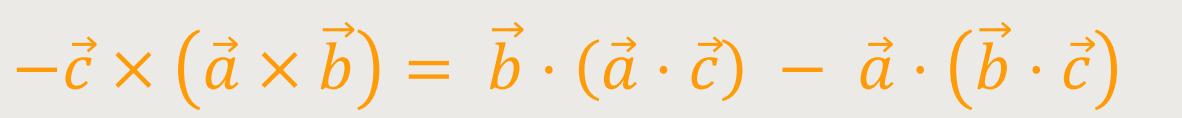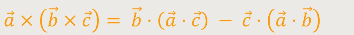Da beide senkrecht zueinander stehen, darf die Lage der Klammern bei dem doppelten Vektorprodukt verändert werden. Insofern ergibt sich jetzt durch Umformung: