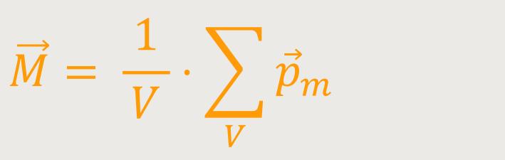 Bei den elektrischen Eigenschaften wurde bereits über die Polarisation des Dielektrikums gesprochen. Als Analogie spricht man jetzt aber nicht von der magnetischen Polarisation, sondern von der „Magnetisierung”. Darunter versteht man die Summe aller Dipolmomente pro Volumeneinheit. Daher ergibt sich für die Magnetisierung: