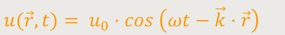 Hierzu rufen wir uns nochmals die Beschreibung einer Welle aus der Mechanik in Erinnerung, nämlich als einen räumlich und zeitlich periodischen Vorgang. Die mechanische Welle wurde als eine Auslenkung abhängig von einer Ortskoordinate und der Zeit definiert: