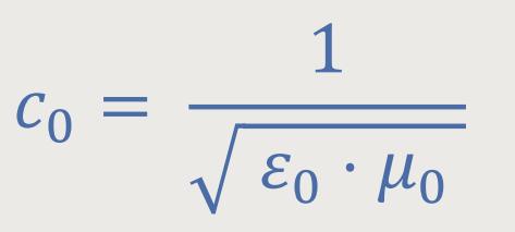 Bei der bisherigen Betrach­tung hat sich ergeben, dass sich elektro­magne­tische Wellen mit einer gewissen Geschwindig­keit ausbreiten. Somit gilt für das Vakuum: