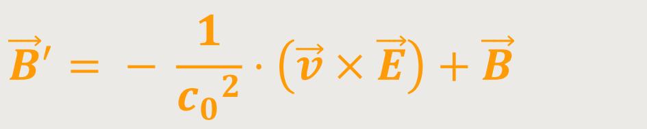 Daraus kann man erkennen, dass im System S' zusätzlich eine magne­tische Fluss­dichte auftritt, die aus dem elek­trischen Feld im System S erwächst.