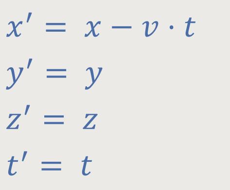 Da es ja um die Unterschiede in der Sichtweise beider Transformationen geht, bildet zunächst wieder die Galilei-Transformation die Ausgangssituation.
