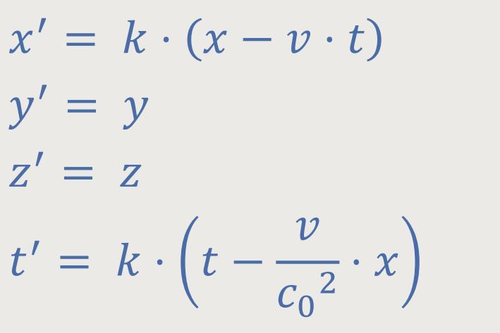 Zeitkoordinate mit einbezogen werden muss, weil sich die Zeit beim Transformieren