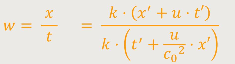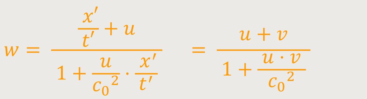 Anhand der Lorentz-Transformation werden wir abschließend noch betrachten, wie sich die Addition von Geschwindigkeiten darstellt.