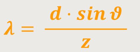 Umgekehrt ist es auch möglich, Spektrometrie zu betreiben, indem bei bekanntem Beugungswinkel und bekannter Gitterkonstante die Wellenlänge ermittelt wird: