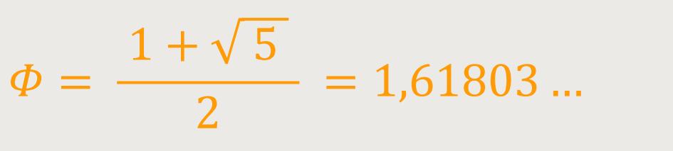 Und das ist wirklich außergewöhnlich. Rational betrachtet ist das, was wir als extrem wohlproportioniert empfinden, etwas völlig Gegensätzliches. Eine mathematische Betrachtung der Zahl Φ (Phi) macht ihre Einzigartigkeit deutlich. So lassen sich die Verhältnismäßigkeiten der drei Größen „Minor”, „Major” und „das Ganze” in einer einfachen Beziehung darstellen. Die bisher bekannteste Formel lautet: