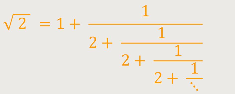 Neben den Bruchzahlen lassen sich auch irrationale Zahlen durch einen Kettenbruch darstellen. Der einzige Unterschied besteht darin, dass der Kettenbruch einer irrationalen Zahl unendlich ist.