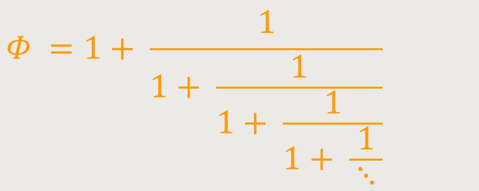Auch die irrationale Zahl Φ (Phi) lässt sich in Form eines Kettenbruches darstellen: