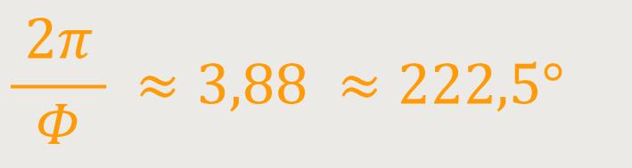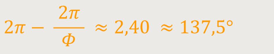 Zum besseren Verständnis sei erwähnt, den Goldenen Winkel erhält man, wenn der Vollwinkel im Goldenen Schnitt geteilt wird.