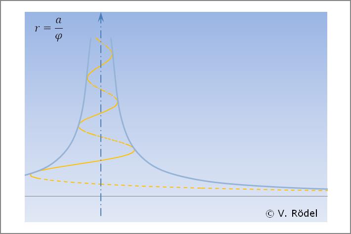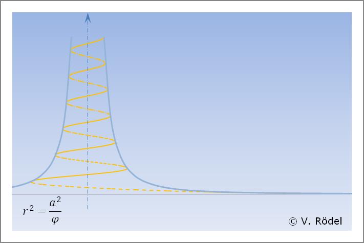 Eine Spirale auf Basis der „Hyperbolischen Spirale” lässt sich beschreiben als: