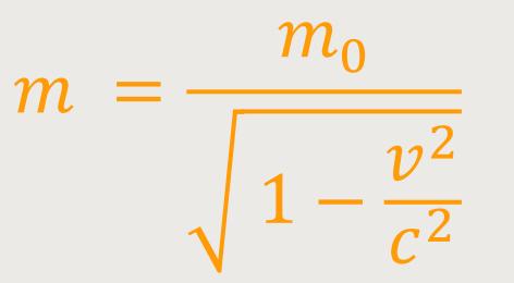 Wobei die Masse immer die aktuelle Masse ist, die auch von der jeweiligen Geschwindigkeit abhängt. Die Masse setzt sich demnach zusammen aus seiner Ruhemasse m₀ im Verhältnis zur Lichtgeschwindigkeit.