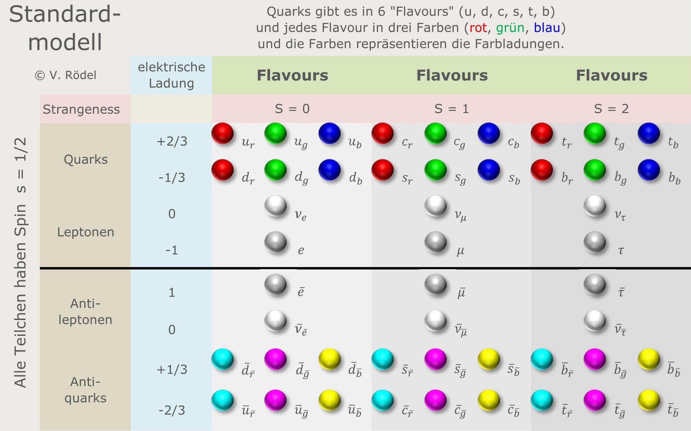Übertragen auf die Quarks bedeutet das, wenn man drei verschiedene, der
