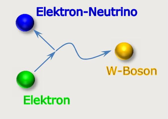 Das Elektron kann auch über die Schwache Wechselwirkung mittels Boson mit anderen Teilchen schwach wechselwirken.
