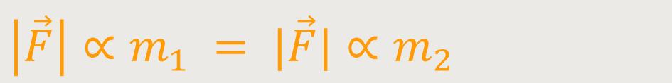 Wenn zwei Massenpunkte gleichberechtigt einander gegenüber stehen, dann muss aus Symmetriegründen auch gelten, dass die Wechselwirkungskraft ebenfalls proportional sein muss.