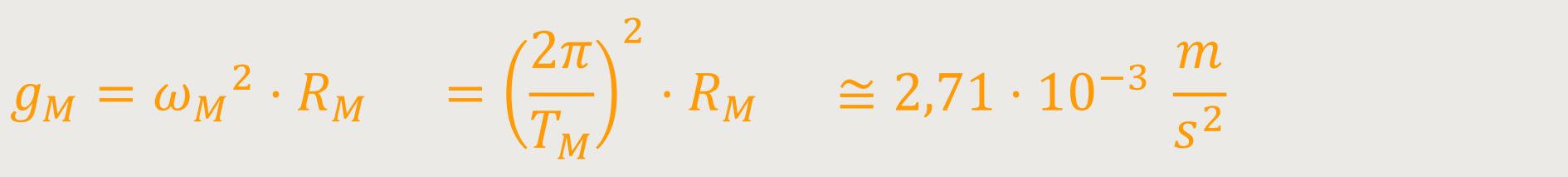 Die Fallbeschleunigung bzw. die Zentripetalbeschleunigung an der Stelle des Mondes ist definiert als: