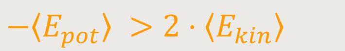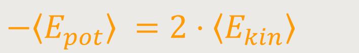 Aber wie groß müssen Wolkenbereiche sein, damit diese überhaupt kollabieren können? Der Virialsatz, der ursprünglich von Clausius als Satz der klassischen Mechanik formuliert wurde, hilft uns hier weiter. Er besagt, dass die potentielle Energie, die in einer Wolke steckt, betragsmäßig doppelt so groß ist, wie deren kinetische Energie, allerdings mit negativem Vorzeichen: