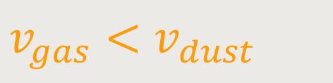Also, je näher man an das Zentrum kommt, desto schneller rotiert der Scheibenbereich. Weil aber bei den Gasteilchen der nach außen gerichtete Gasdruck noch dazu kommt, brauchen die Teilchen nicht so schnell rotieren. Insofern wird die Geschwindigkeit des Gases kleiner sein, als die des Staubes, da bei letzterem nur die Gravitation und die Zentrifugalkraft im Gleichgewicht sein müssen.