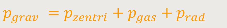 Zusätzlich gibt es von innen noch den Gasdruck, hervorgerufen durch die hohe Temperatur. Und schlussendlich gibt es von innen noch den Strahlungsdruck durch die Photonen. Die Photonen drücken mit ihrem Impuls ℏ·k auch nach außen. Diese vier Drücke/Kräfte müssen im hydrostatischen Gleichgewicht stehen.