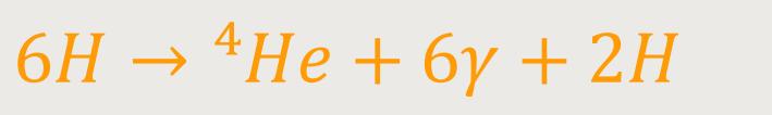 Wenn zwei Helium-3-Atome(3He) aufeinander treffen, bilden sie ein Helium-4-Atom(4He), bestehend aus zwei Protonen und zwei Neutronen. Die beiden freien Protonen stehen wieder als Wasserstoffatome für den nächsten Fusionsprozess zur Verfügung. Man spricht bei dem gesamten Prozess auch von einem „Proton-Proton-Prozess”.