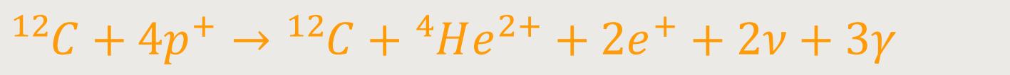 Ab dem Moment, wo wir Kohlenstoff haben, setzen ganz andere Zyklen ein. Man bezeichnet ihn auch als „Bethe-Weizsäcker-Zyklus” (CNO-Zyklus). Zu Beginn dieses Zyklus wird aus einem Kohlenstoffatom(12C) ein weiteres Proton eingefangen und bildet ein Stickstoffatom(13N). Dieses Atom ist allerdings nicht stabil, und indem es ein Positron(e+) abgibt, wandelt sich ein Proton im Kern in ein Neutron um und wird zu einem Kohlenstoffatom(13C). Wenn ein weiteres Proton dazukommt, bildet sich ein Stickstoffatom(14N). Kommt abermals ein Proton dazu, wird es zu einem Sauerstoffatom(15O).