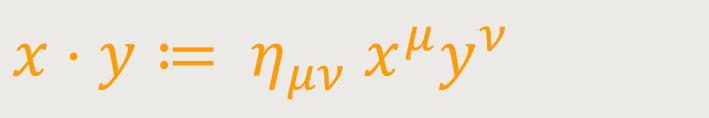 Alternativ kann man das innere Produkt zweier Elemente des Minkowski-Raums auch als Wirkung des metrischen Tensors ημν auffassen: