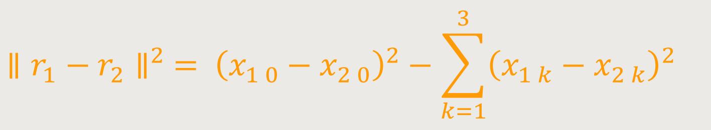 (Der Abstand zweier Vierer-Vektoren r₁ und r₂ im Minkowski-Raum ist damit gegeben durch: