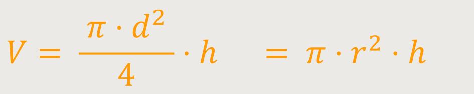 Im ersten Fall geht es um einen Zylinder, ähnlich einer Toilettenrolle, der aufrecht auf seiner Grundfläche steht. Sein Volumen wird bestimmt durch die Grundfläche multipliziert mit seiner Höhe. Oder als Formel ausgedrückt: