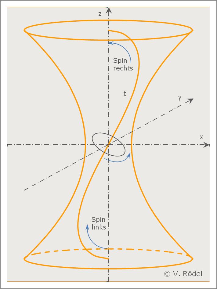 Was passiert, wenn innerhalb des Systems eine dynamische Kraft auf die Teilchenscheiben ausgeübt wird? Der gigantische Pool aus Wasserstoffmolekülen wird in dem System zunächst in Bewegung versetzt. Ausgehend von einem Rechtssystem rotiert der Materiefluss um die Zeitachse t mit einer Rechtsdrift. Die Bewegung sorgt bei moderaten Geschwindigkeiten für eine laminare Strömung. Das heißt, alle Teilchen bewegen sich in Schichten, die sich nicht miteinander vermischen. Das Fluid strömt kontinuierlich, ohne dass sichtbare Turbulenzen, also keine Verwirbelungen oder Querströmungen, auftreten.