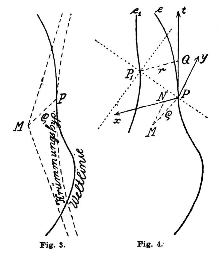 Dieser Vektor ist stets normal zum Bewegungsvektor im Punkt P. Ein solcher, zu einer Kraft im Punkt P gehörende Kraftvektor, bezeichnete Minkowski als ein sich „bewegender Kraftvektor im Punkt P”.